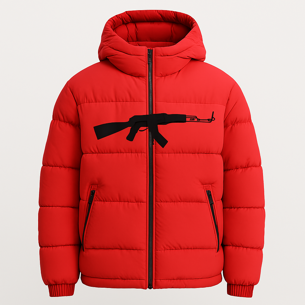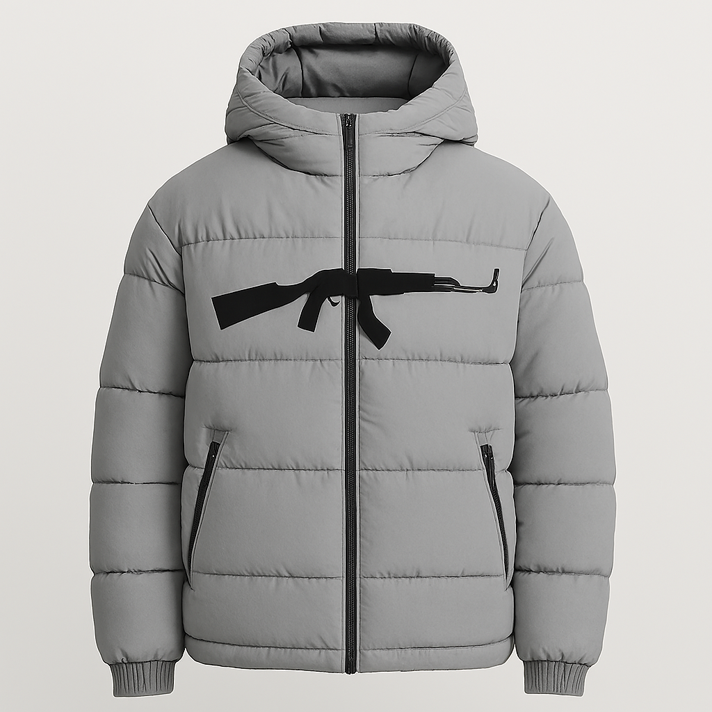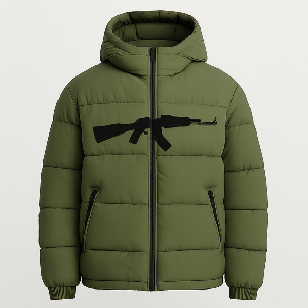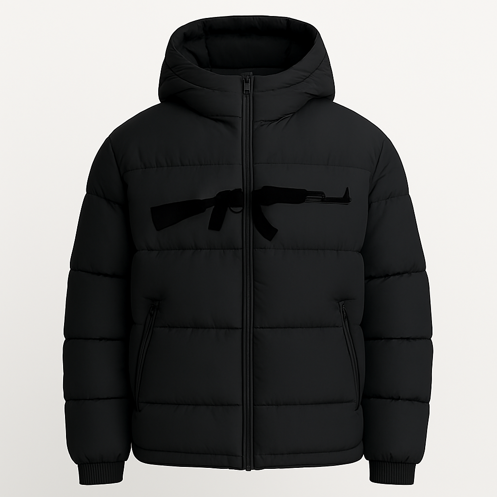 Engineered for impact, this graphic puffer blends streetwear edge with tactical precision. The standout feature: a clean, embroidered silhouette of the RPK rifle—centered across the chest for unapologetic presence. Quilted construction delivers warmth and structure, while the full-length zipper and elastic cuffs ensure a secure, streamlined fit.